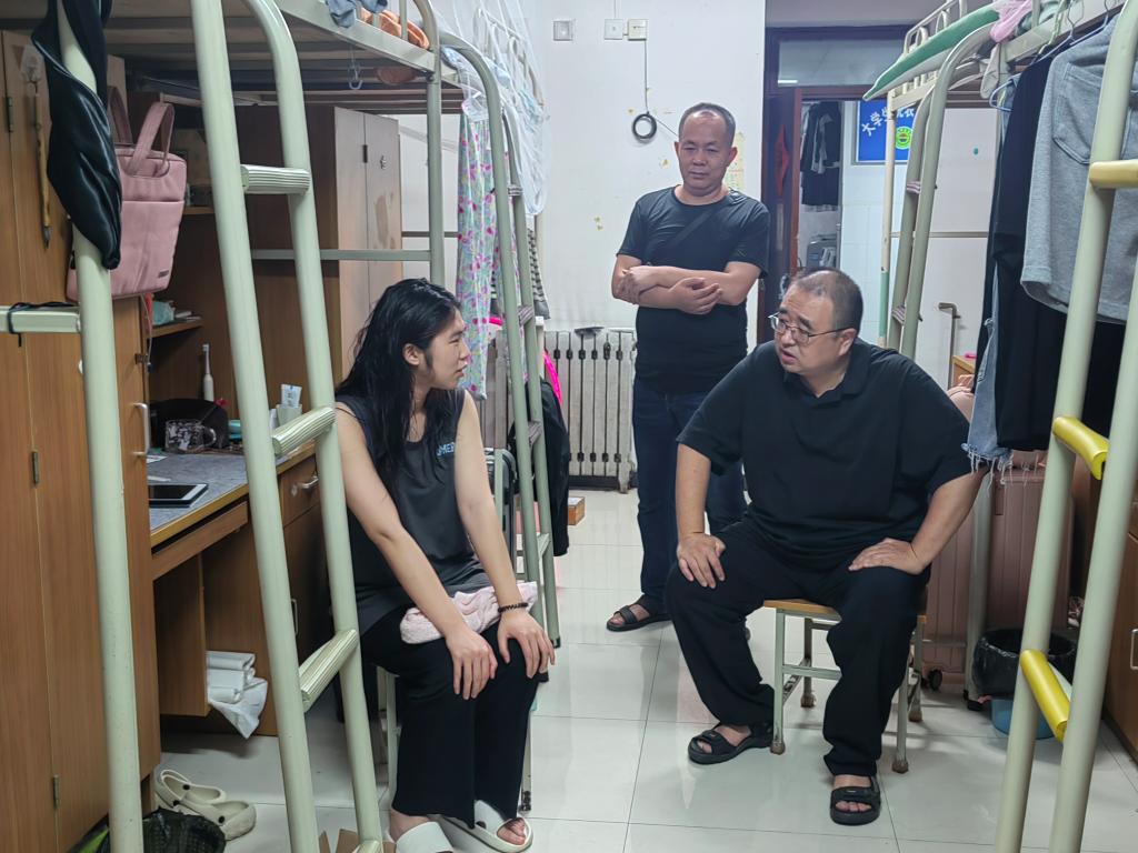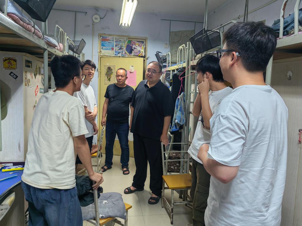为深入了解暑期考研留校学生的思想、学习和生活状况。7月14日晚,美术学院院长殷晓克、党总支副书记雷毅及专职辅导员徐宁来到朝阳校区11号公寓楼和12号公寓楼走访慰问学院暑期考研留校学生,与同学们就考研备考情况进行了交流,了解同学们的学习、生活情况。