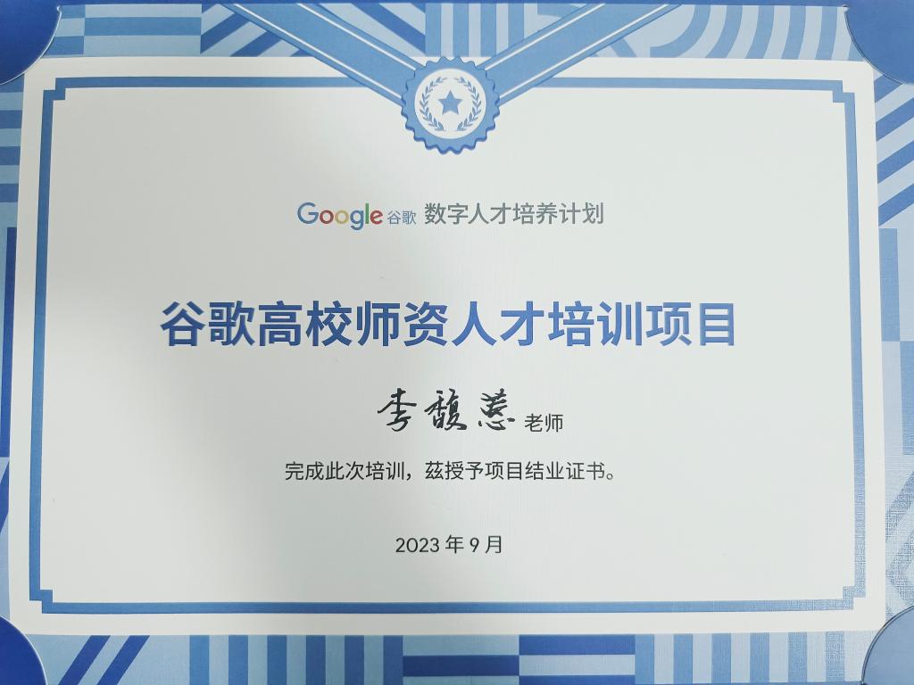 通过两天的培训学习,教师们获得了“2023谷歌高校师资人才培训”的结业证书,同时也对大数据技术在教育教学中的运用、数据的生命周期与基本操作等有了多角度思考。本次教师参加高校师资人才培训活动,是计算机学院进一步加强教师队伍建设,发展教师数据素养的重要方式之一。此次培训活动帮助教师感知了大数据时代前沿技术、开拓了教学视野、加强了学习共同体交流。(通讯员 李馥蕙 审核人 杨方琦)