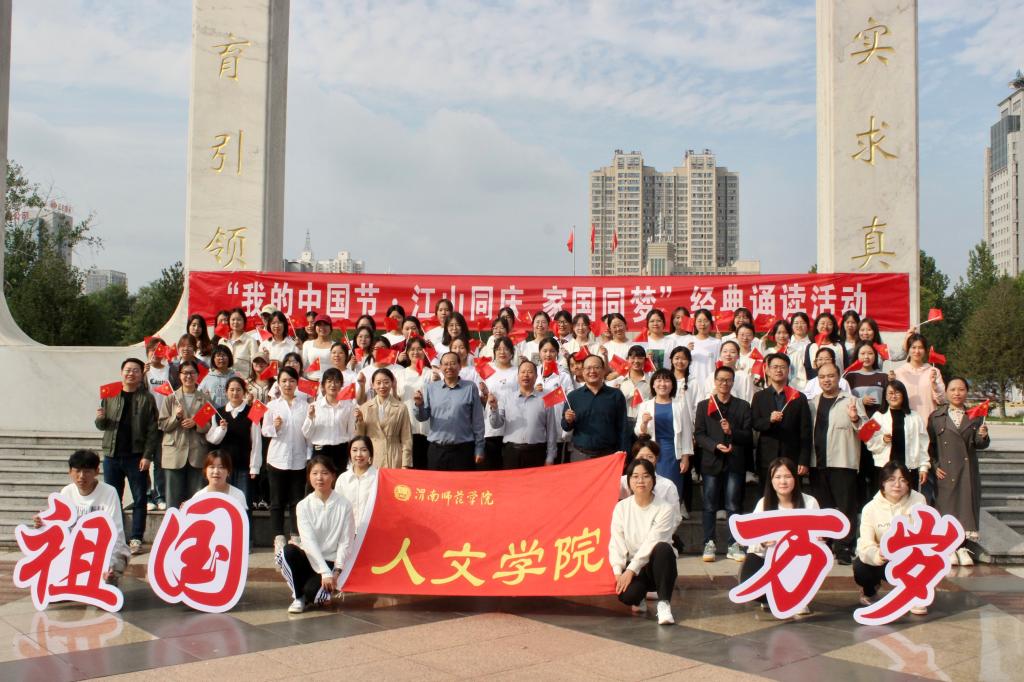 9月27日下午,人文学院在渭华门广场举行“我的中国节·江山同庆 家国同梦”暨2023年度第五期“奋进新征程 建功新时代”经典诵读活动。校党委副书记汪勇、该院处科级干部、全体辅导员、学生代表70余人参加诵读,副院长延慧主持活动。