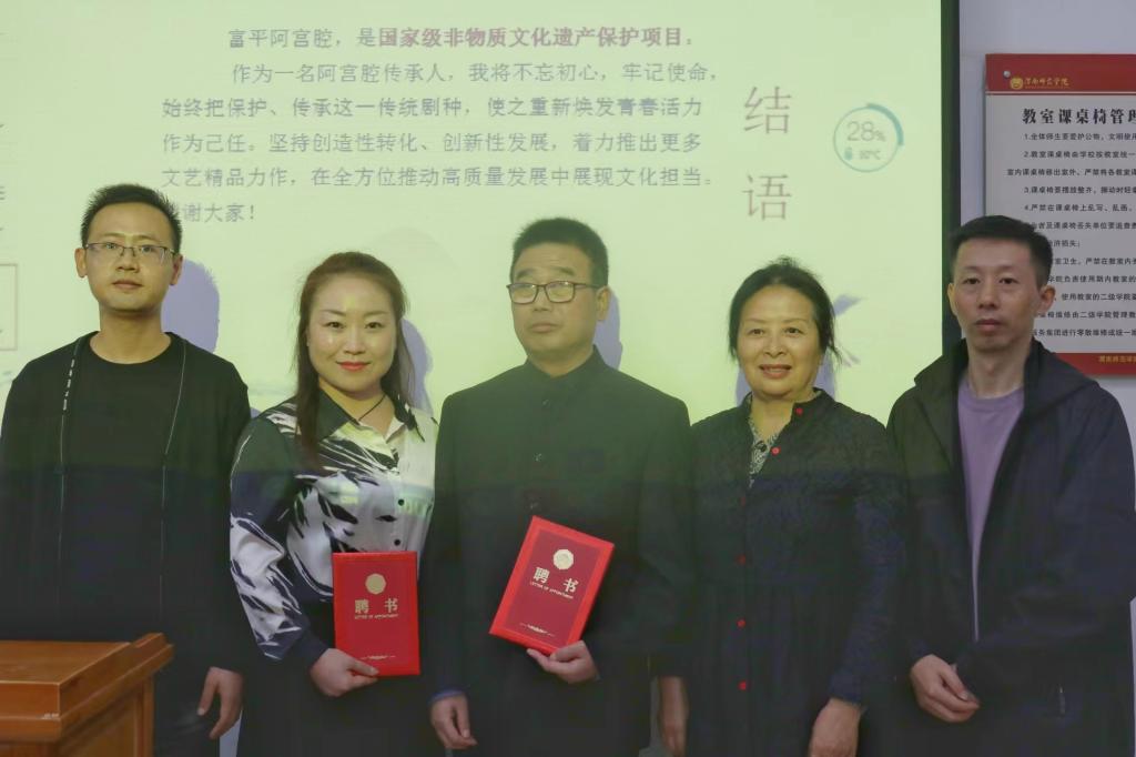 上午10时,阿宫剧团演员代表为我校音乐学院音乐、舞蹈专业的部分班级开展了《阿宫腔唱腔特点》《阿宫腔音乐伴奏》等专题讲座及互动交流,他们从阿宫腔的历史渊源、唱腔特点、音乐伴奏、身段与表演等多个方面深入浅出的给师学生们进行细致讲解,讲座现场气氛热烈,讲述内容和表演形式深受大家喜爱。