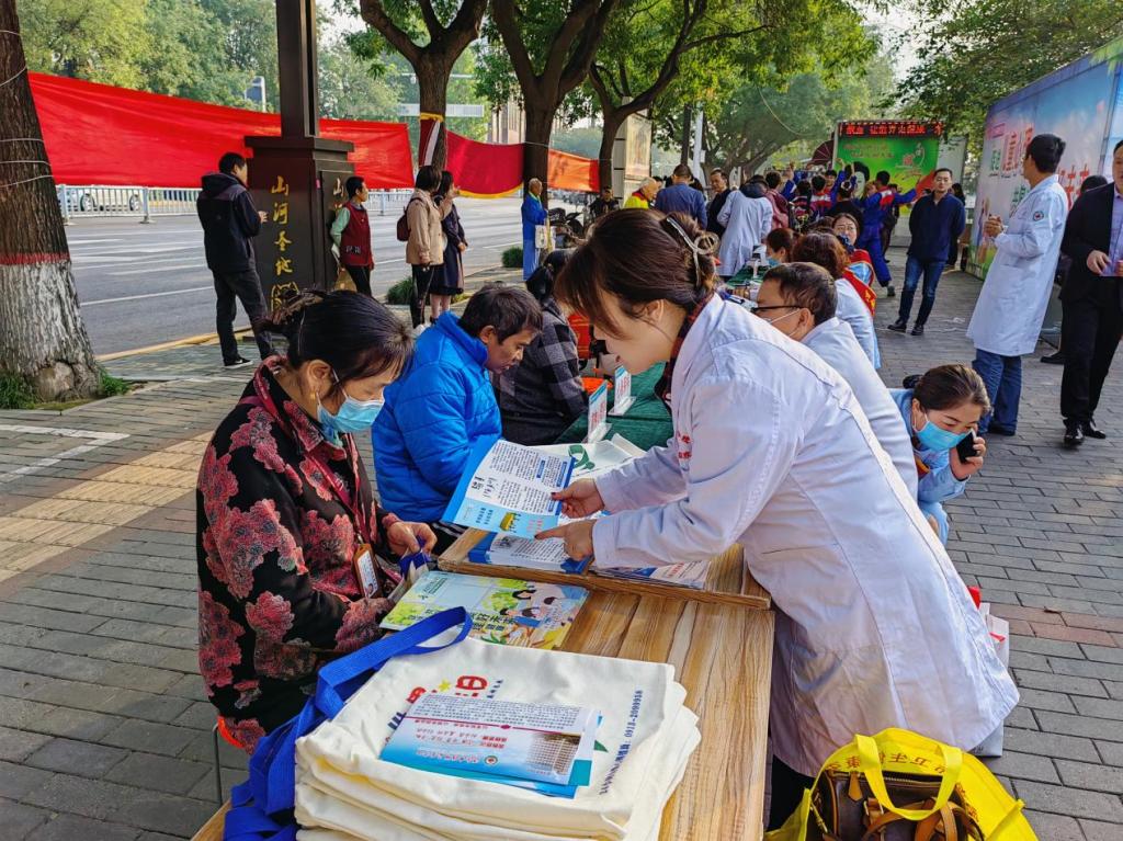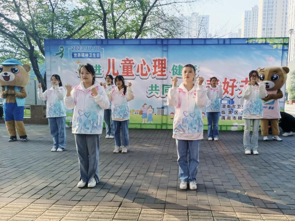 10月10日上午,我校联合渭南市精神卫生中心、陕西铁路职业技术学院、渭南职业技术学院在渭南市中心广场举办“促进儿童心理健康,共同守护美好未来”为主题心理健康“快闪”活动。音乐学院通过文艺表演的形式,附属医院通过设立咨询义诊台,发放精神健康教育处方和心理健康知识读本的形式,大学生心理健康协会以手语操的形式,向社会民众普及心理健康和精神卫生防治知识,彰显大学生的阳光心态,青春活力。