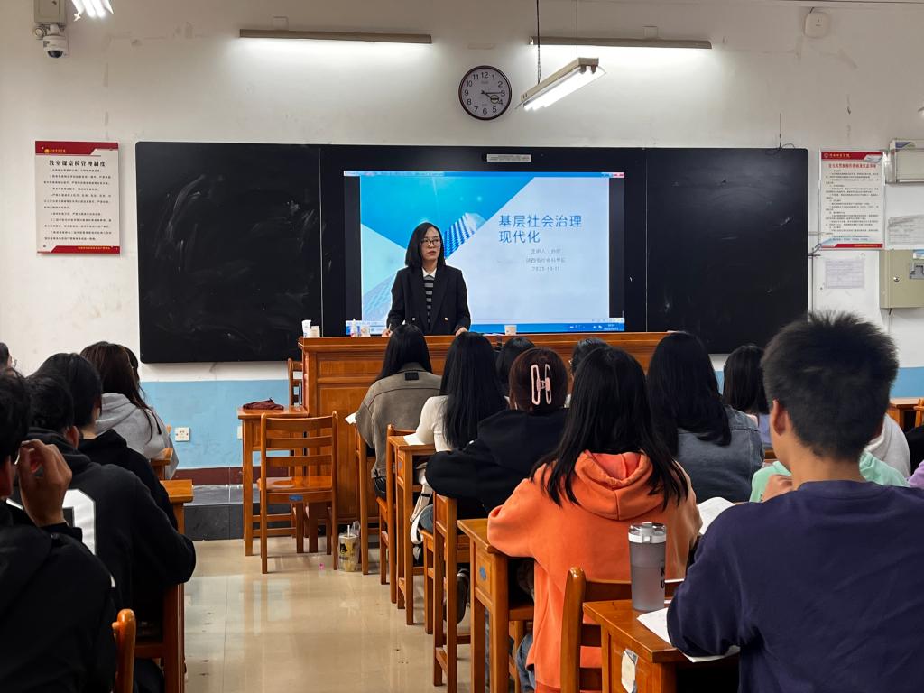 乔欣博士授课结束后,鲜玉芳老师向乔欣博士表示感谢,并依据教学进度,结合乔欣博士授课内容接续讲述基层社会治理现代化问题。城乡社区是我国社会治理的基本单元,也是基层社会治理现代化的基石。鲜玉芳老师以“城乡社区治理现代化的发展路向”为题,主要讲述了“协同化”“惠民化”“信息化”等问题。两位老师授课内容关系紧密,相得益彰,也是“双师课堂”教学改革的生动实践。校级教学督导付俊贤教授充分肯定了本次双师授课的改革成效,并就课件制作、内容衔接、教学方法等方面提出整改建议。