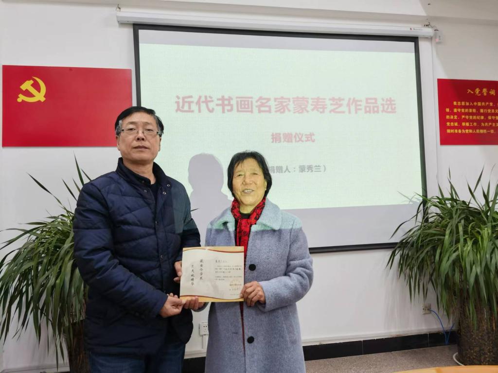 11月15日上午,蒙秀兰女士向我校图书馆捐赠图书《近代书画名家蒙寿芝作品选》2册。