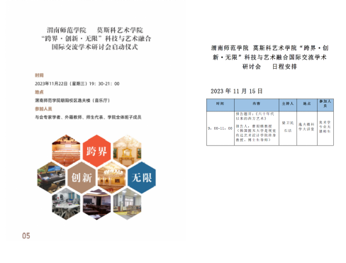 为贯彻落实习近平总书记在党的二十大报告中提出的“实施科教兴国战略,强化现代化建设人才支撑”及“推进文化自信自强,铸就社会主义文化新辉煌”指示精神,更好地推动文化艺术和科技深度融合,全面提升文化艺术与科技的协同创新能力。“跨界·创新·无限”科技与艺术融合国际交流学术研讨会于2023年11月22日至24日在我校召开。本次会议由欧宝娱乐官方app与俄罗斯莫斯科国立师范大学主办,欧宝娱乐官方app莫斯科艺术学院、俄罗斯莫斯科国立师范大学俄中统筹中心、陕西省“一带一路”艺术教育引智基地承办;参会专家为来自韩国、俄罗斯、泰国、马来西亚等国著名高校的专家学者。会议召开采取分段式进行,以学术论坛、研讨会、报告会等多种形式开展,采用“主会场+平行分会场”、“线下+线上”的方式召开。