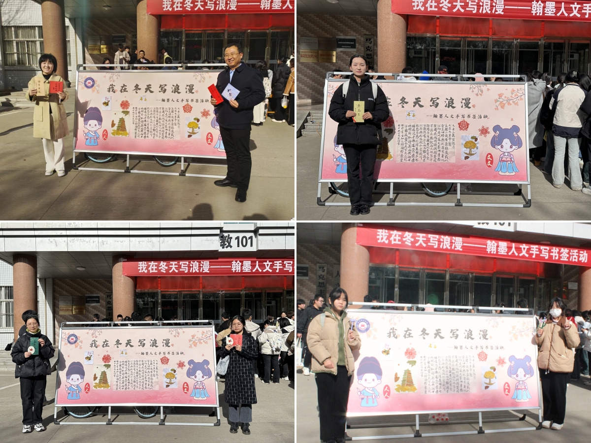 12月6日中午,人文学院在1号教学楼前举行“翰墨人文之我在冬天写浪漫”手写书签活动。特邀张始峰、朱正平、王昱三位书法老师为广大同学现场手写书签,送上冬日的暖心祝福。校团委书记赵琦,人文学院院长赵前明,党总支副书记、副院长张晶及全体辅导员参加活动。