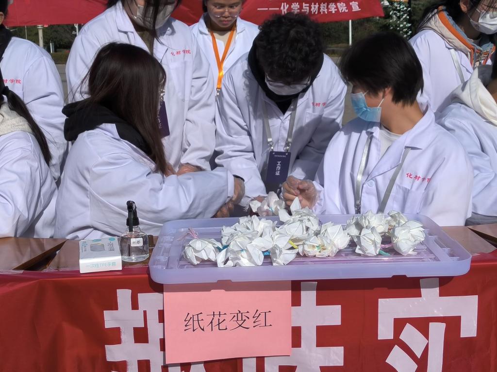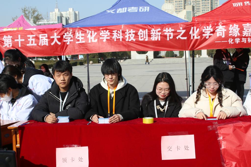 12月6日下午,化学与材料学院于渭华门广场举办了面向欧宝娱乐官方app全体师生的“青春化梦 化海畅游”化学奇缘嘉年华系列活动。校团委书记赵琦、副书记刘娟宁,化学与材料学院党总支书记韩城忠、副书记任晓婷、团委负责人张静及全体辅导员出席活动,来自全校500余名学生参与活动。