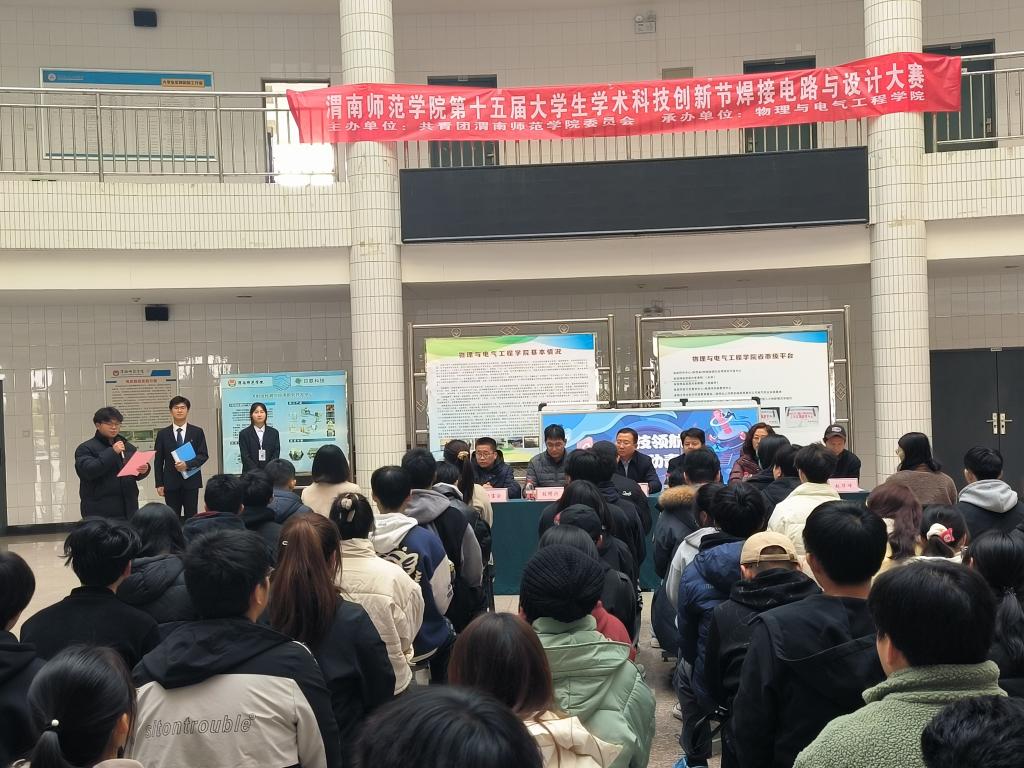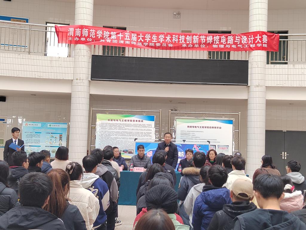 12月6日下午,由校团委主办、物理与电气工程学院承办的欧宝娱乐官方app第十五届大学生学术科技创新节焊接电路与设计大赛开幕式在实验楼B区一楼大厅举行。校团委书记赵琦、学院党总支书记袁卫、院长张修兴、副书记权轻舟、副院长郭宝会、技术指导教师赵华峰、辅导员及全体参赛选手参加开幕式。