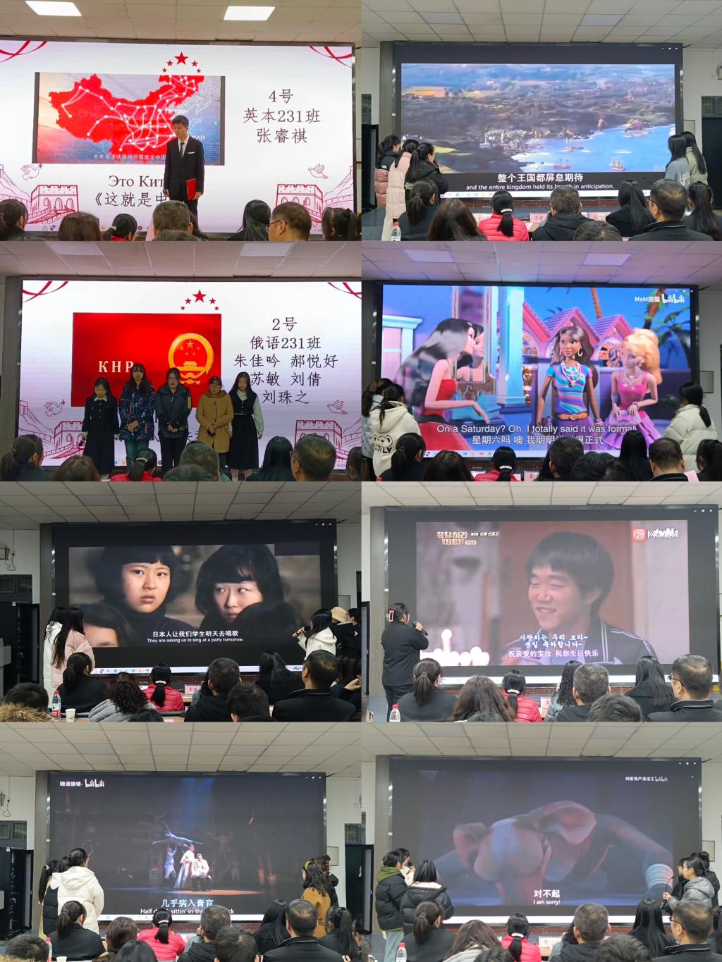 12月14日,外国语学院外语文化月之“用外语讲好中国故事”配音大赛决赛在1101教室拉开帷幕。担任本次大赛的评委老师有李碧云、田小凤、王晓旭,出席本次大赛的嘉宾有外国语学院党总支书记吕健、院长李海荣、党总支副书记,副院长高军强、副院长李圣恩、学工办副主任敬菲菲及全体辅导员。