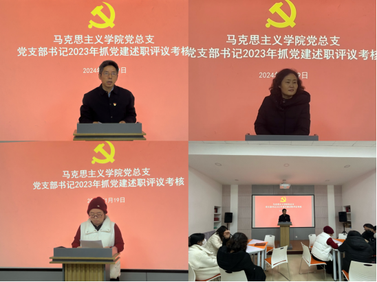 1月19日,马克思主义学院党总支在学院第二党员活动室组织了2023年度支部书记抓党建述职评议会。会议由党总支书记赵国峰主持,党总支委员、教研室主任代表、师生党员代表等共13人到场听取了述职汇报,参与了述职测评。