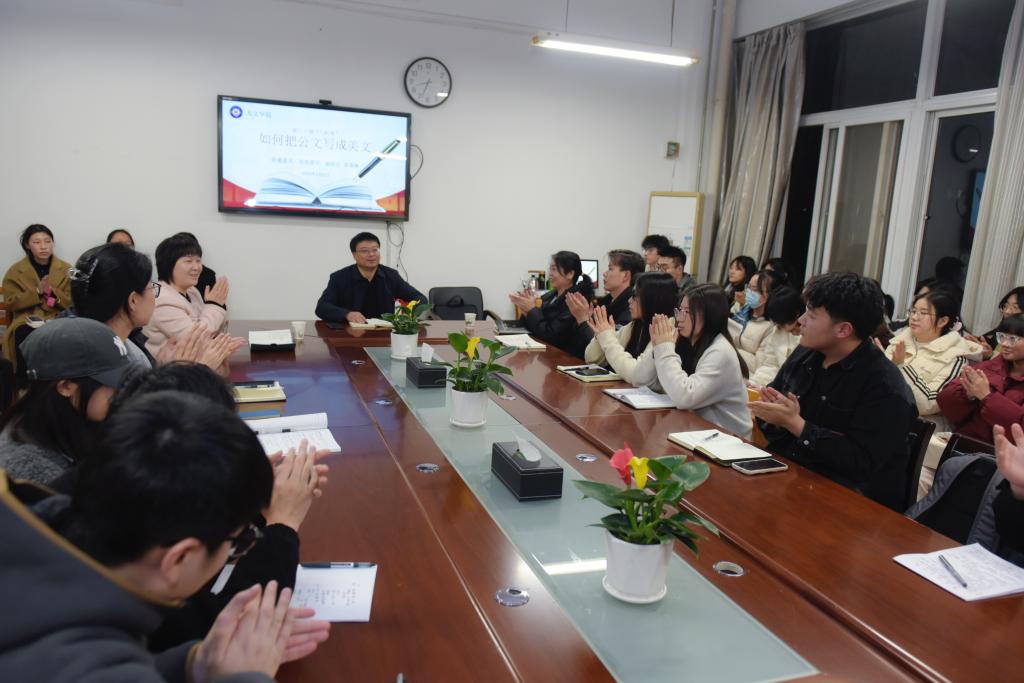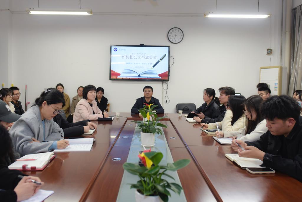 3月6日晚,人文学院在博识楼1318会议室举行本学期第1期(总第30期)“与析斋”答疑活动,特邀我校党委委员、副校长常青林老师,以“如何把公文写成美文”为题与同学们面对面交流畅谈。该院党总支副书记、副院长张晶主持座谈会,该院辅导员、学生及兄弟学院教师50余人参加了本次面对面答疑解惑。
