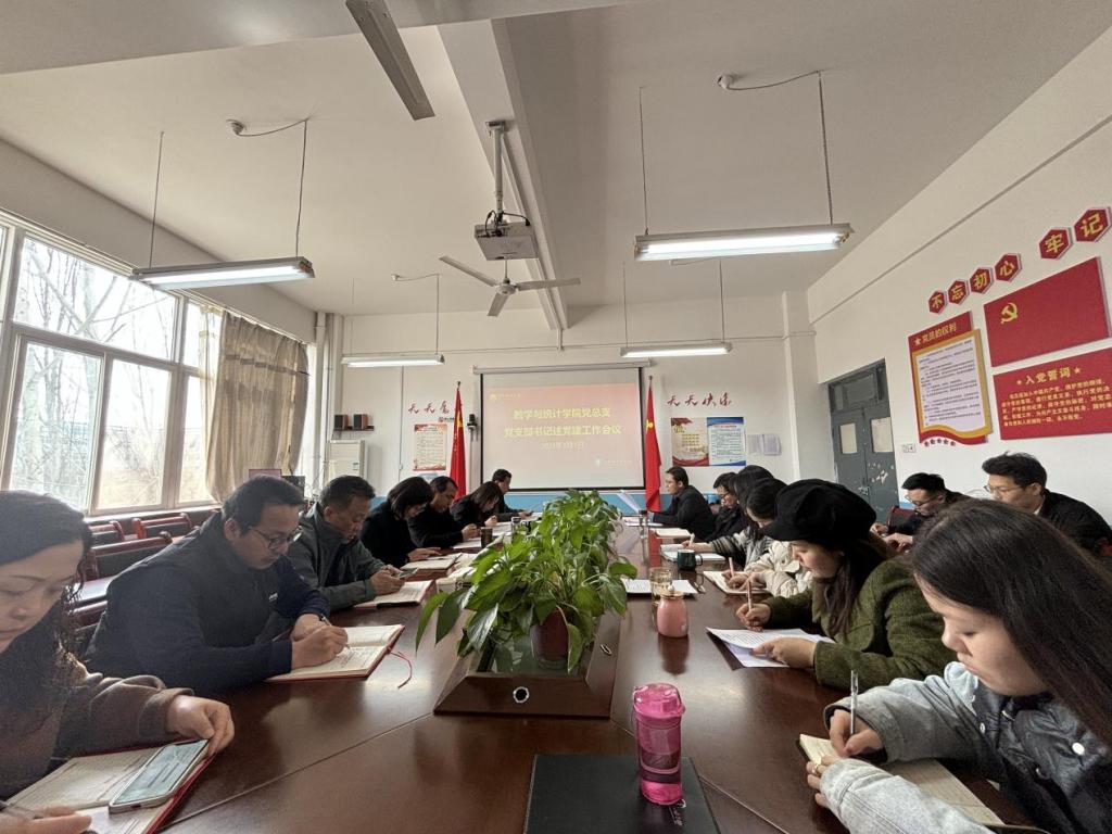 3月7日,数学与统计学院党总支召开2023年度党支部书记抓党建述职评议考核会议,分别听取了教工党支部、第一学生党支部及第二学生党支部书记的汇报。会议由学院党总支书记武江波主持,学院党总支委员、各支部委员及师生党员代表参加。