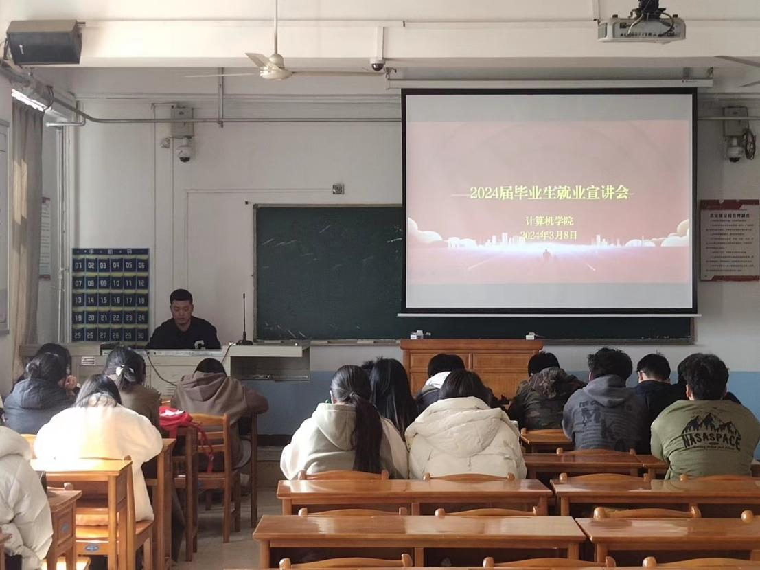 3月8日下午,计算机学院邀请北京千锋互联科技有限公司在同心楼5511教室举行专场招聘宣讲会,学院领导班子、毕业班辅导员及80余名毕业生参加。