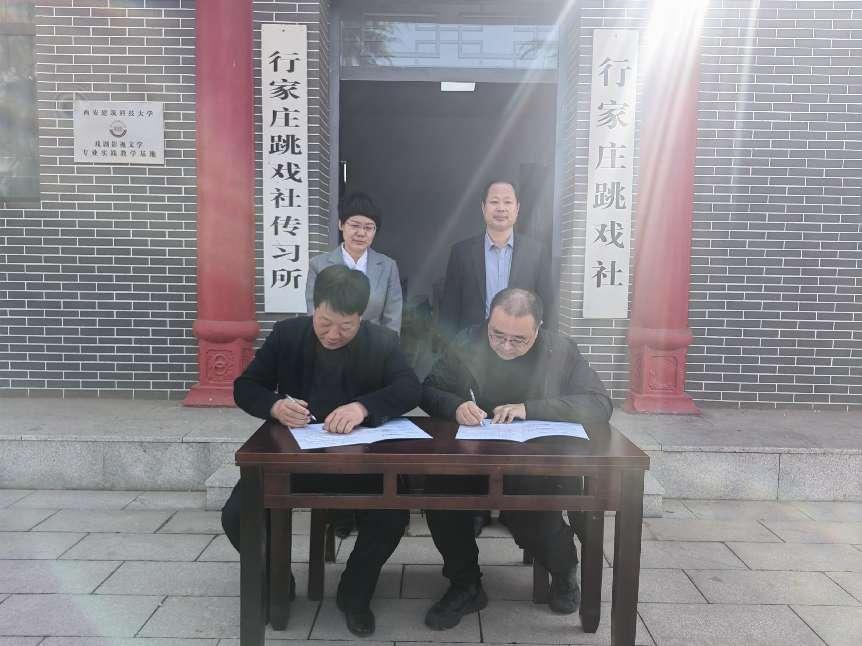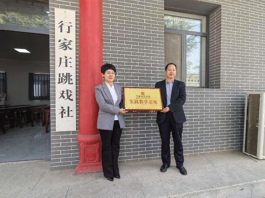 在合阳县新池镇行家庄调研期间,汪勇一行观看了国家级非遗跳戏表演,并与当地非遗传承人深入交流,了解跳戏的目前现状和传承发展等。期间,在汪勇和李小鸽的见签下,美术学院院长殷晓克与行家庄跳戏社负责人签订了实践教学基地协议。随后,汪勇和李小鸽为欧宝娱乐官方app实践教学基地挂牌。