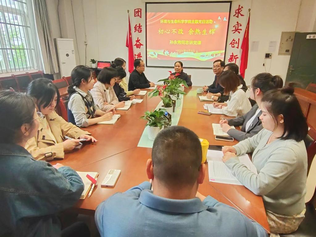 4月9日下午,环境与生命科学学院党总支书记孙永秀同志以“初心不改余热生辉”为主题,向全体行政人员讲授专题党课。