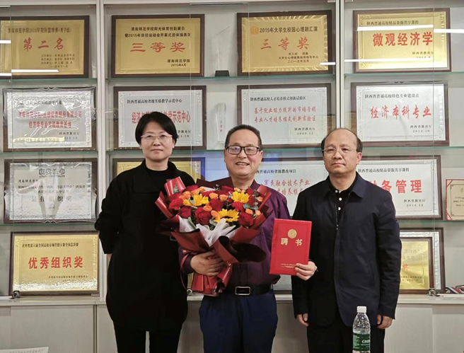 聘任仪式上,经济与管理学院院长袁梁为魏光民同志献花,感谢魏光民为经管学院做出的贡献;党总支书记李富荣为魏光民同志颁发聘书,希望以“书记小喇叭”为主要教育平台,继续开展大学生思想政治教育特色活动。
