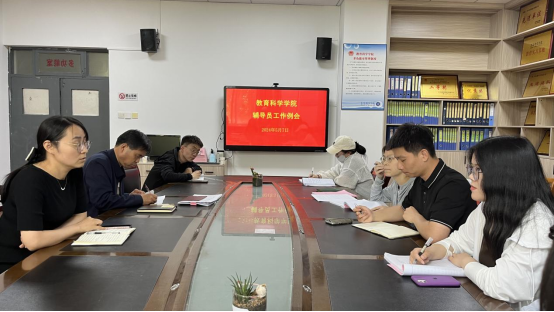 5月7日下午,教育科学学院召开辅导员工作例会暨就业工作推进会。党总支书记李武军、党总支副书记马雷蕾、学工办副主任赵丹卉以及全体辅导员参加会议。