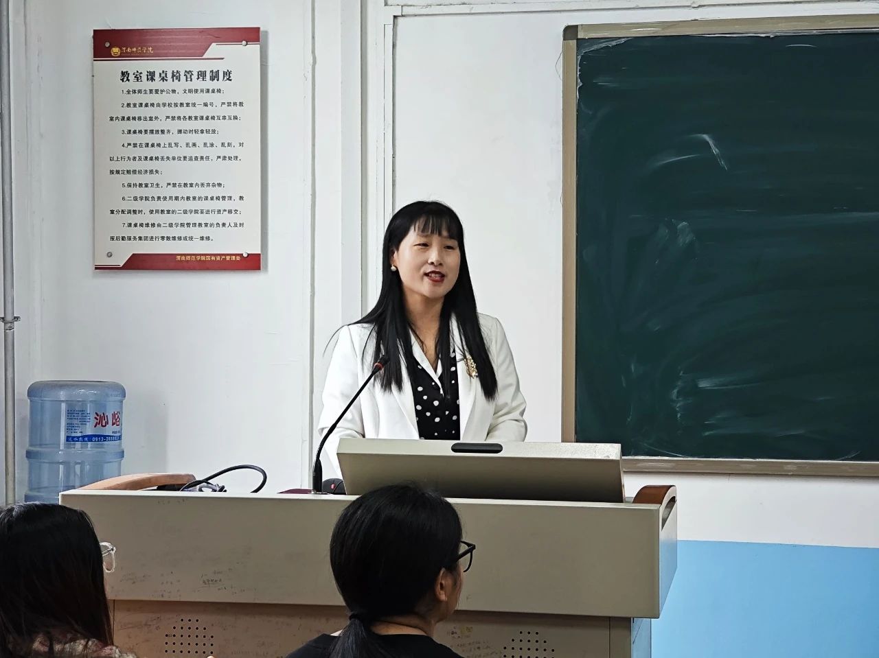 报告会上,王丽花以“忆同学少年 风华正茂”为主题,深情回忆了自己在大学的学习生活,同时将自己求学、工作的心路历程分享给大家。她根据自己的亲身经历讲述了从自卑到自知,从自律到自信,从自强走向自立的过程。她表示,每个人都有自卑的时刻,但关键是要能够正确面对和处理这种情绪。通过自我反省和学习,我们可以逐渐认识自己,发现自己,克服困难,突破瓶颈。同时,她也告诉大家在成长的道路上,自律是赢得自信的关键。她描述了自己大学时期自律的生活态度,如何在学习和生活中不断挑战自我,始终把“学高为师,身正为范”当成自己的座右铭,最终结出了成功的果实。在发言中,她多次鞠躬感谢母校和恩师们的栽培,一件件小事,一声声关心,让她受益无穷,言语中充满了对母校的深厚感情和对恩师的无限敬意。她的发言声情并茂,让在场的师生无不动容。最后,王丽花对学弟学妹们提出了殷切的期望和建议。她表示,在人生道路上,同学们要学会精选目标,坚持积极进取,让奋斗不负青春。她告诫大家要珍惜青春这段宝贵的时光,努力追求自己的梦想,越努力越幸运。