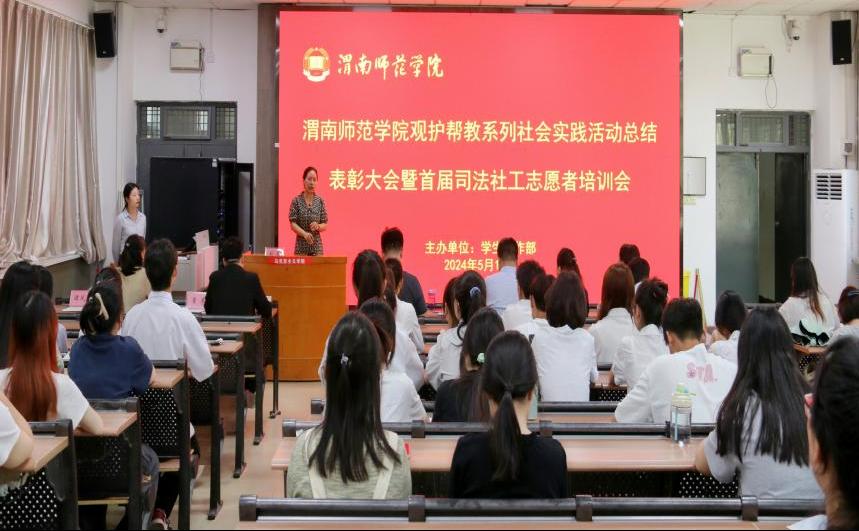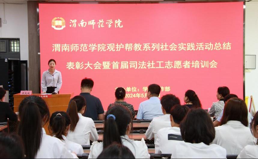 渭南市少先队总辅导员马源,学校团委副书记潘涛,学生工作部(处)副部长、心理中心主任刘原,教育科学学院副院长马雅菊,市少工委办公室主任范立,市12355青少年服务台主任王艳妮,市青少年心理学会副秘书长贾景丞、常亮,市青少年心理学会办公室主任潘文珍及参加2023、2024年观护帮教系列社会实践活动的学生代表100余人参加会议。(通讯员 谭凤娥 审核人 田耿辉)