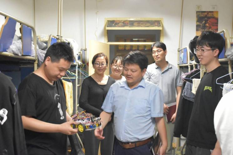 张修兴在走访中亲切与毕业生交谈,关心了解毕业生未来的人生规划,了解他们内心真实想法和需求,帮助他们答疑解惑,鼓励同学们根据自身实际情况树立理性的择业观和就业观。他希望毕业生能够规划好就业道路,将所学知识用于工作实践,发挥专业优势服务地方经济社会,以此来回报学校培养、回馈社会,建设国家;同时希望大家毕业后,继续关心学院的发展与建设,为学院发展积极建言献策。
