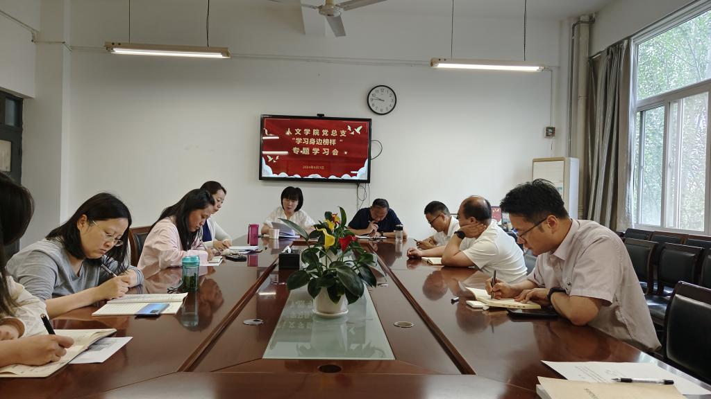 6月3日上午,人文学院党总支在1318会议室召开“学习身边榜样”专题学习会,学院全体处科级干部参加会议,会议由党总支书记张晶主持。