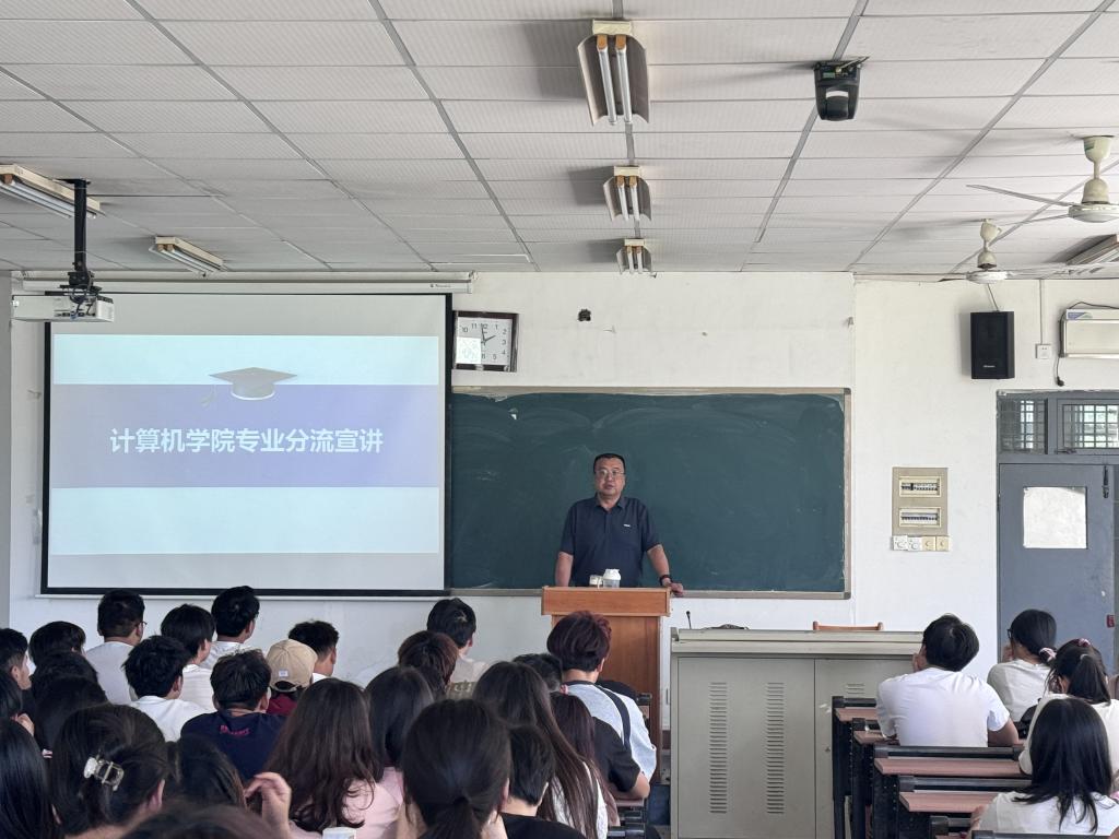 6月5日下午,计算机学院在1201和1301教室举行2023级计算机类专业分流宣讲会。数字媒体技术专业负责人哈渭涛,计算机科学与技术专业负责人同晓荣,软件工程专业负责人罗琪以及2023级计算机类全体同学参加会议,会议由副院长哈渭涛主持。