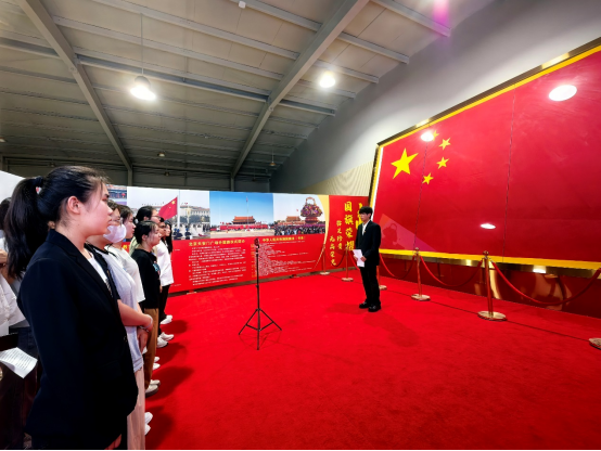 活动期间,党史231班李鹏涛等8名学生以《清澈的爱,只为中国》等为题在这面巨幅国旗下抒发了学院学生、当代青年的爱国情、报国志。