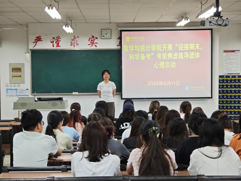 6月11日晚,数学与统计学院开展“迎战期末 科学备考”经验交流分享心理团辅活动,由心理专干马岩主持,部分学生代表参加。