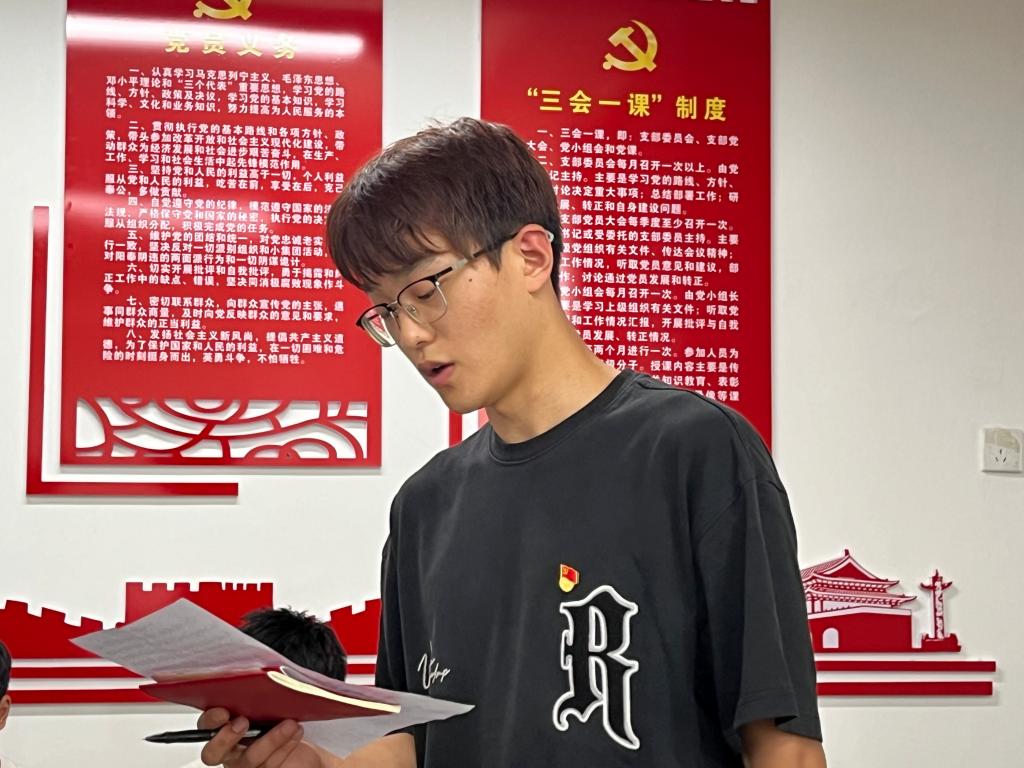 活动第二项,毕业生党员开展“对党说句心里话”的交流活动,2024届毕业生代表党员李甲庆、黄思远、李师文、张嘉庆、关卓颖分别发言分享了各自的入党初心、在学习生活实践等方面发挥标杆作用的经历与体会,现场朴素而真诚的讲述,持续传递青年学生党员饱满的精神状态、积极向上的学习生活态度、坚持为同学服务的行动自觉,这充分展现了学生党员在党组织的教育与培养下思想不断成熟、行动持续发力、体悟逐步深刻。他们的分享不仅是对过去经历的回顾,也是对未来责任的展望,也鞭策鼓励非毕业生党员以此为标杆,在思想、学习、实践、行动等方面能脚踏实地,奋勇争先。