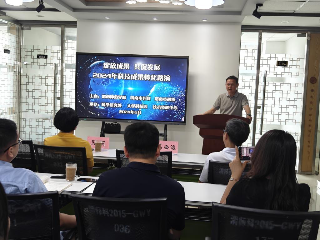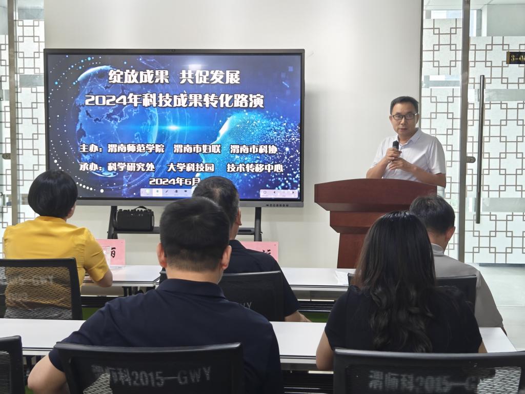 6月26日下午,学校在逸夫实训楼311室举办“绽放成果 共促发展”2024年科技成果转化路演活动。此次活动由欧宝娱乐官方app、渭南市妇联和渭南市科协主办,我校科学研究处和大学科技园承办,渭南市妇联副主席马丽,渭南市科协科普部部长马西运莅临指导交流。活动由大学科技园总经理何泰伯主持。