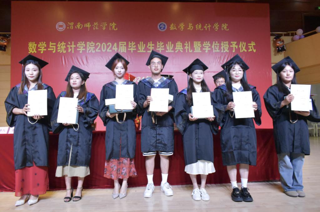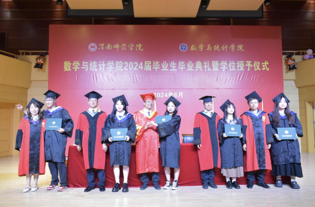 6月27日上午,数学与统计学院2024届毕业典礼暨学位授予仪式在逸夫楼华金音乐厅举行。党委委员、副校长常青林,党总支书记武江波,院长陈斌,党总支副书记张菊梅,副院长戴磊及学院全体教职工出席大会,大会由张菊梅主持。