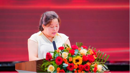 教师代表肖越勉励同学们要守正心、强信心、立恒心,用坚毅的步伐踏上新的征途,用所学知识去创造美好的未来。