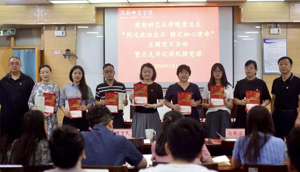 7月1日下午,莫斯科艺术学院党总支举办“同过政治生日,铭记初心使命”主题党日活动暨总支书记讲党课,学院全体师生党员参加活动,党总支副书记叶晓燕主持。
