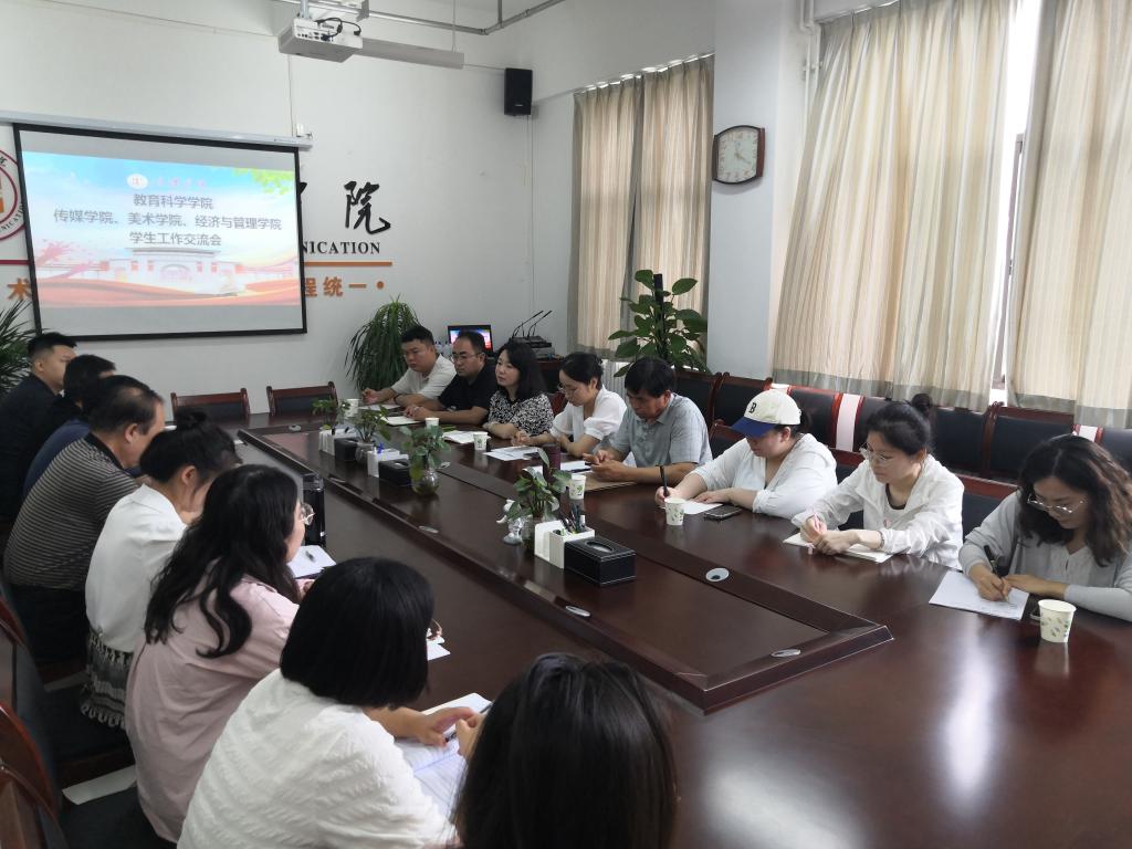 为促进学生之间的交流与合作,提升学生工作的质量和水平。7月9日上午11时,教育科学学院与传媒学院,经济与管理学院,美术学院开展学生工作经验交流分享会。