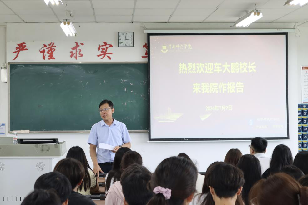 7月9日下午,西安高新第一学校副校长车大鹏应邀来我校数学与统计学院作学术报告。数学与统计学院院长陈斌、办公室副主任夏超及学生代表参加报告会。院长陈斌主持。