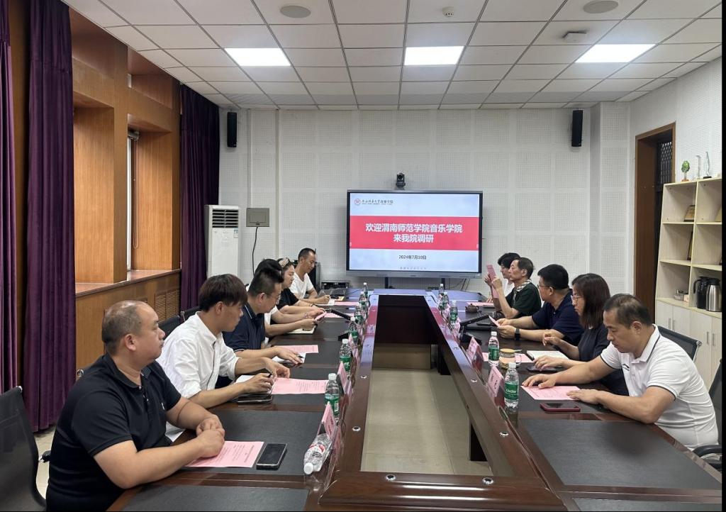 7月10日下午,音乐学院院长刘鹏一行六人赴陕西师范大学音乐学院调研。陕西师范大学音乐学院院长黄建,二级教授张君仁、副院长张娟、副院长郭元,舞蹈系党支部书记刘辉,教学秘书马文飞等人参加调研座谈会。会议由黄建主持。