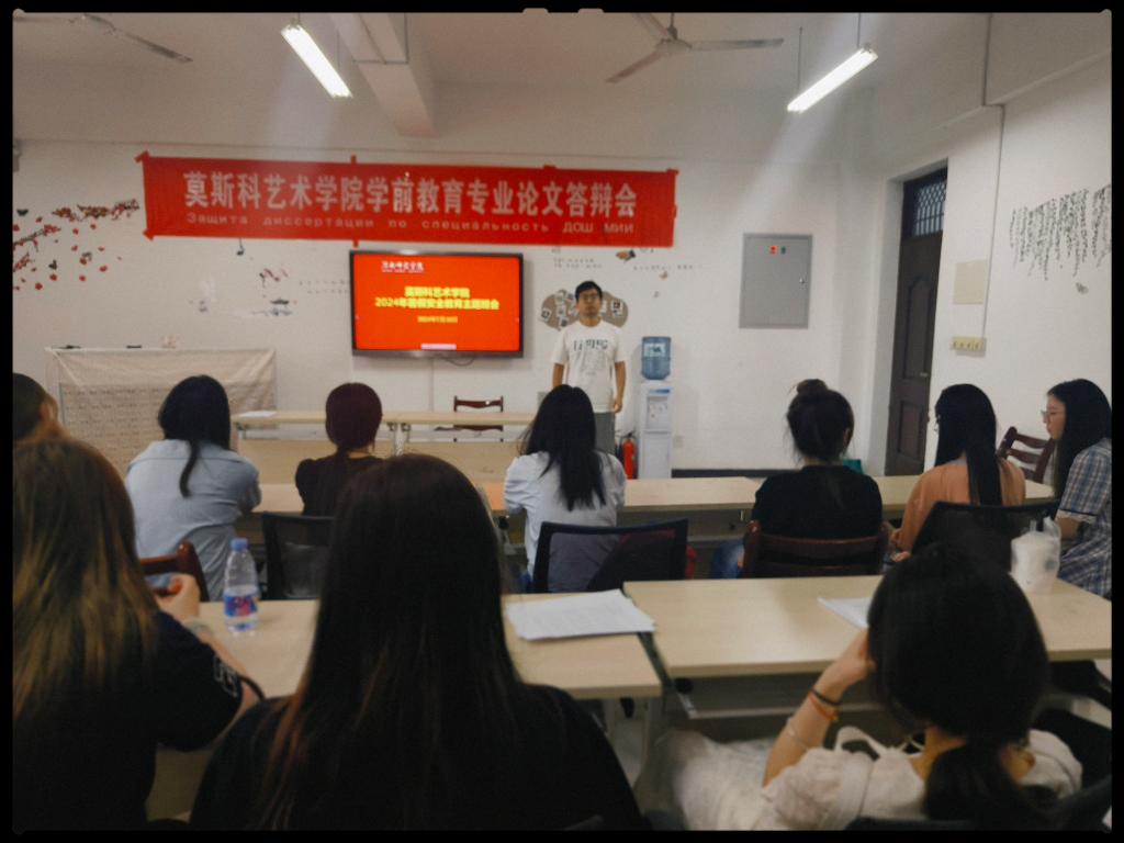 7月11日,莫斯科艺术学院开展“安全记心间 平安过暑假”安全教育主题班会。做好暑期安全教育工作,增强学生安全意识,切实加强校园安全教育,提高学生防范各类安全事故能力。