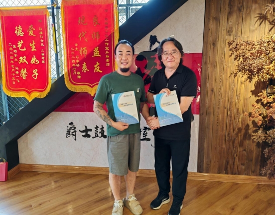 肖耀刚一行来到包头鼓楼爵士鼓文化艺术工作室,探访了校友从林。双方签署了共建大学生就业基地协议。