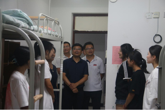 9月7日下午,党委副书记常青林、数学与统计学院党总支书记武江波、院长陈斌、党总支副书记张菊梅、副院长赵教练及新生辅导员和班主任一同前往新生宿舍看望了解新生入住情况,开展慰问工作。