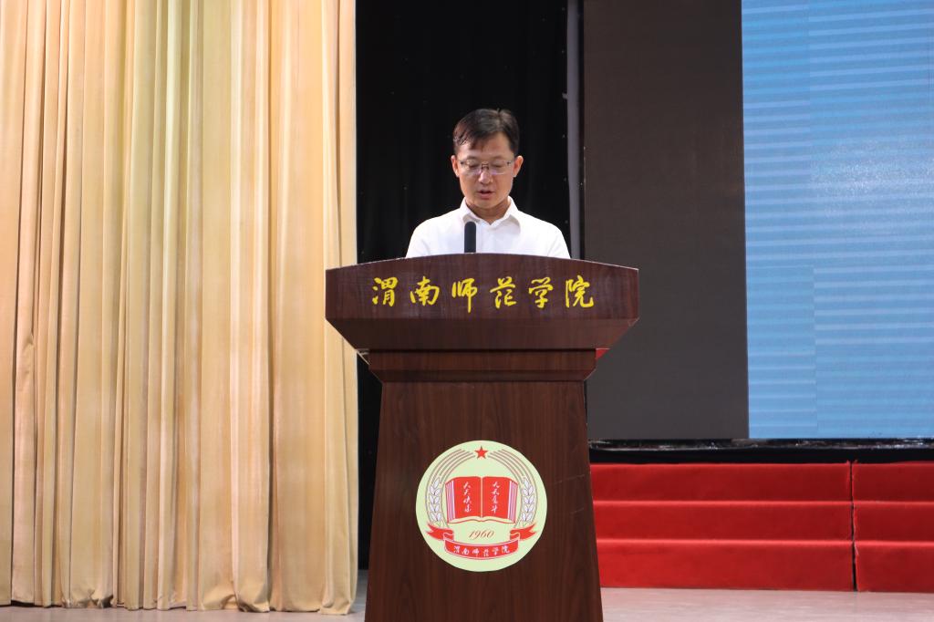 赵小鹏教授作为教师代表发言。赵小鹏在发言中表达了对新生的欢迎与期望,并以“天天奋斗,天天快乐”的学校精神和“严谨求实,笃学敏思”的院训激励学生们勇于挑战自我,勇登学术高峰。最后,他希望在这个大家庭中,每位同学都能开心快乐,学有所成。