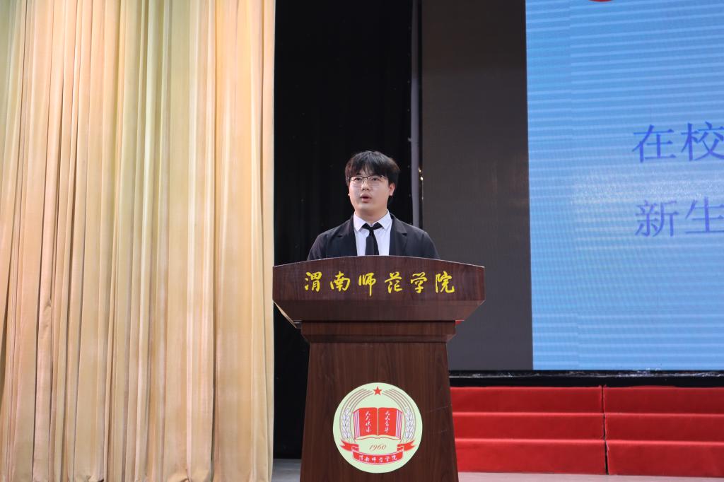 2021级数本5班田正阳代表在校生发言。他分享了如何在学业与生活中找到平衡,在各种活动中发掘自己的潜力;呼吁同学们自我学习,独立思考,找准自己的节奏,合理支配自由时间,让大学生活变得更加充实和精彩。2024级数学与应用数学公费师范生吕点代表新生发言,她表达了新生对大学生活的憧憬,以及为达到理想和目标所要付出的努力和做好准备迎接大学生涯中各种挑战的信心。