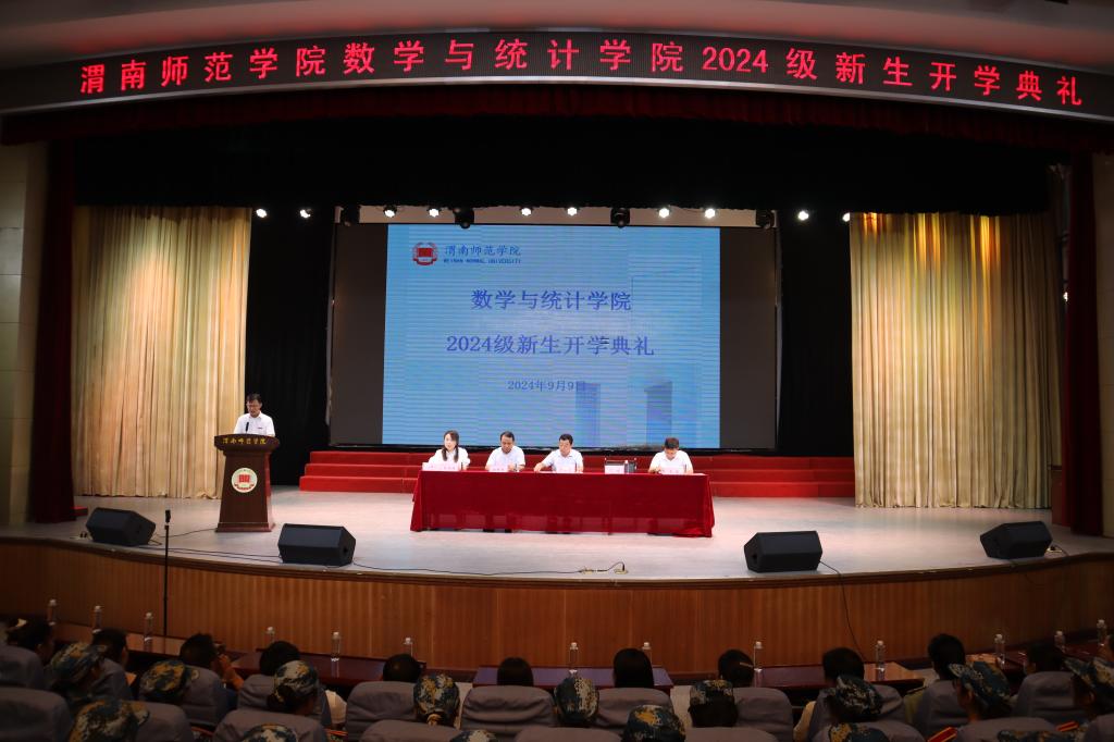 9月9日下午,数学与统计学院2024级新生开学典礼在陶然楼演艺厅顺利举行。学院党政领导、专业负责人、新生辅导员、新生班主任、全体行政人员及2024级全体新生参加。会议由党总支副书记张菊梅主持。