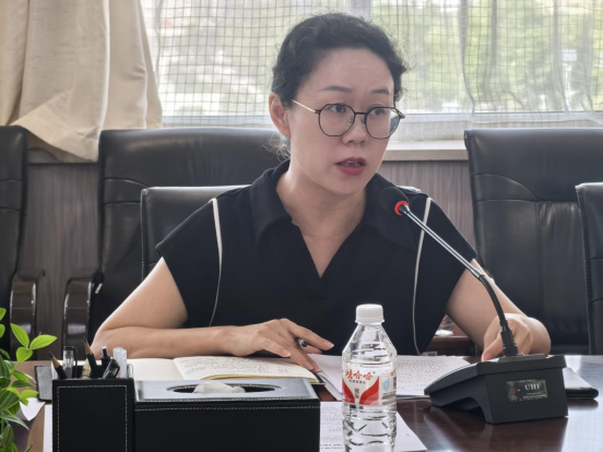 学生工作部副部长、大学生心理健康教育指导中心主任刘原对我校上半年心理健康教育工作情况做了总结,梳理了各部门心理健康工作亮点和成效。她结合实际心理健康中心的实际工作内容分享了“知—建—联—融—塑”赋能育人“心”体系缓解学生就业压力的经验,总结了心理健康工作形成的标准化制度体系、专业化服务措施、精准化风险研判、联动化帮扶过程和品牌化系列活动的科学性和有效性。重点结合各部门心理健康工作内容,根据心理健康教育与咨询中心标准化建设定级评分标准和支撑材料清单对心理中心迎评工作进行了详细的任务分解和安排部署。