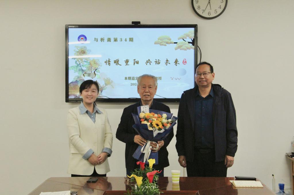 10月11日,恰逢一年一度的重阳佳节,人文学院召开“情暖重阳 共话未来”师生座谈会暨本学期第2期(总第34期)“与析斋”答疑活动,特邀人文学院退休教授、著名红学研究专家严安政教授与学生面对面交流畅谈。院长赵前明,党总支副书记、副院长王昱,全体辅导员及30余名学生参加活动,党总支书记张晶主持座谈会。