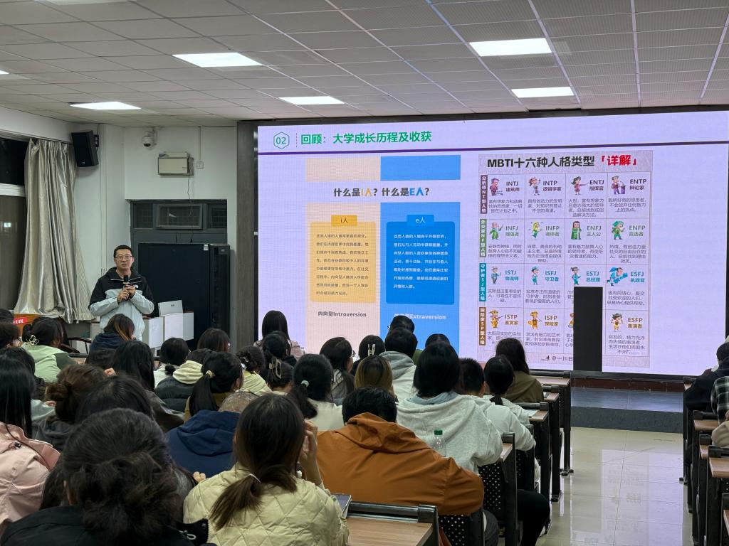 本次活动特邀我校2008级优秀校友、志丹县龙岗实验中学校长丁字红作报告。丁校长以《山不过来,我就过去》为题,从大学期间和工作中的奋斗、成长历程及所思所悟,对未来的构想等方面为学弟学妹们带来了一堂生动而深刻的职业生涯规划课。他分享了自己从一名职场小白通过不断努力,最终成长为中学校长的宝贵经验。他以亲身经历激励学弟学妹们要志存高远,心怀感恩,勇敢追求自己的梦想,改变可以改变的一切,适应不能改变的一切,永远相信美好的事情即将发生。