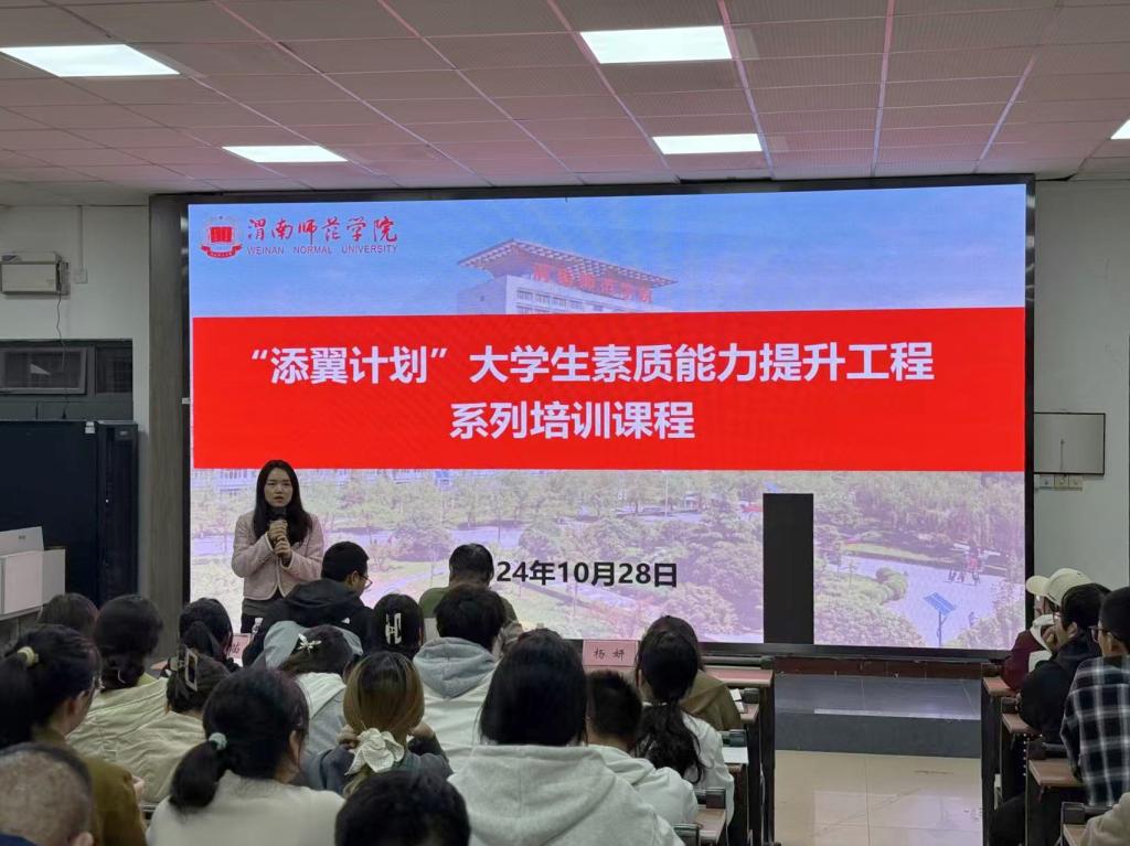 10月28日晚,学校举行“添翼计划”大学生素质能力提升工程培训活动。活动由学生资助管理中心主任张小苗主持。