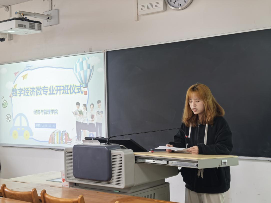 10月30日下午,经济与管理学院在富平校区1121教室举行了数字经济微专业学习开班仪式。开班式由数字经济微专业班辅导员米晨主持,副院长石党英及数字经济微专业修习学生参加会议。