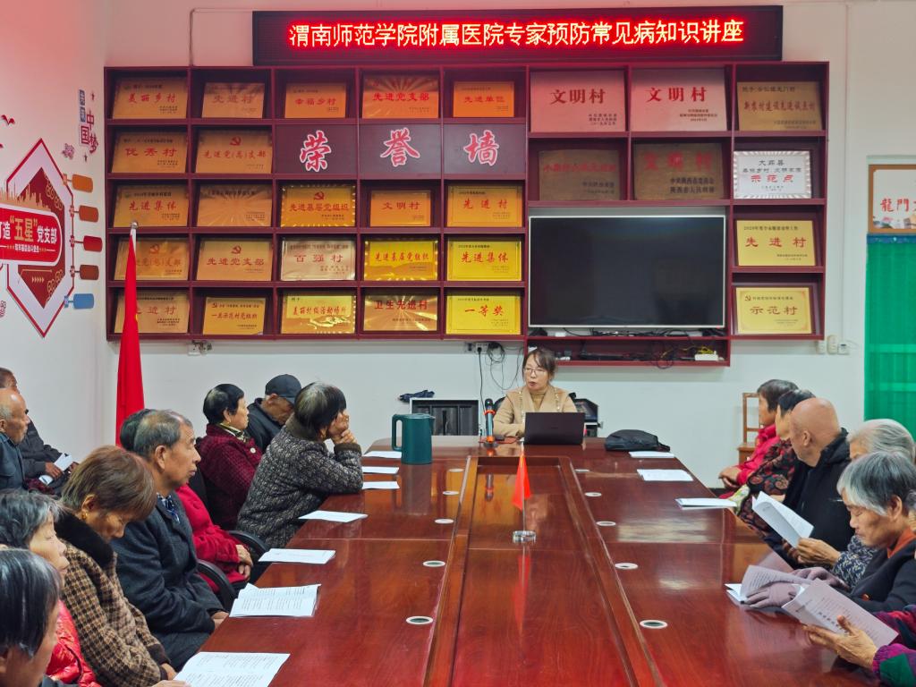 当天,学校驻村书记徐永弟与驻村干部杜炳鋆、校地合作处李勇及村支部书记常永忠向附属医院党支部一行表示欢迎,徐永弟详细介绍了龙门村在乡村振兴工作中的实践与成效,以及《中共中央国务院关于学习运用“千村示范、万村整治”工程经验有力有效推进乡村全面振兴的意见》在当地的实施情况。结合附属医院在前期的扶贫工作考察中的经验和徐永弟书记的介绍,龙门村驻村老年人约600余人,部分老人患有高血压、2型糖尿病、冠心病及氟骨病等病症。王新英副院长和医师王美丽入村后,在村部开展了“送医送药健康宣传——慢性病防治健康教育讲座”活动,针对慢性病患者的实际情况,为龙门村老年居民开展了关于高血压和2型糖尿病、大骨节病防治的慢性病知识宣教,同时医院制作了慢性病健康教育手册及健康教育处方,引导村民合理用药、健康生活,受到了广大村民的欢迎。