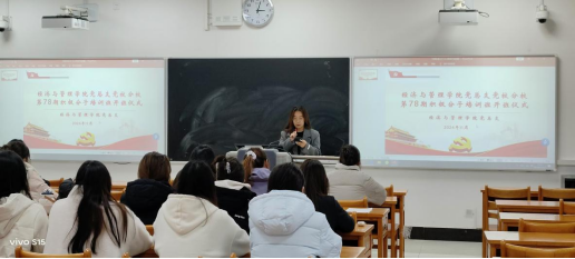 开班仪式上,王晶首先宣读《经济与管理学院党总支党校分校第78期入党积极分子培训班培训期间学习纪律和要求》,她强调,作为新时代的大学生,要深刻认识党的领导核心地位。入党积极分子培训是提升思想境界、增强政治素养的重要途径,希望每一位积极分子都能珍惜此次机会,认真学习党的理论知识,传承党的优良传统。