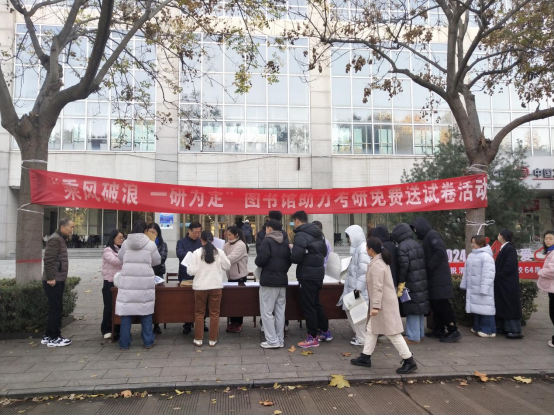 11月25日下午,图书馆开展“乘风破浪 一研为定”送模拟试卷暖心包活动,为我校学子考研助力。