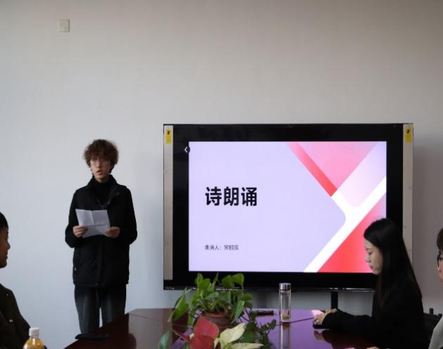 活动首先观看了代码时代,科技与艺术交融的相关短片。随后,软工231班陈德志发表自己的观后感,他认为这不仅是一场视觉的盛宴,更是一次心灵的触动,让人对科技与艺术的融合有了更深的认识和思考。短片中巧妙地将未来科技与古典艺术结合,创造出一种全新的视觉语言。技术的冷峻与艺术的温暖相互辉映,不仅展现了科技的无限可能,也反映了艺术的深刻内涵。才艺展示环节中,同学们用弹唱、朗诵等形式激发灵感,感受代码与艺术结合的魅力,促进同学之间的交流与合作。